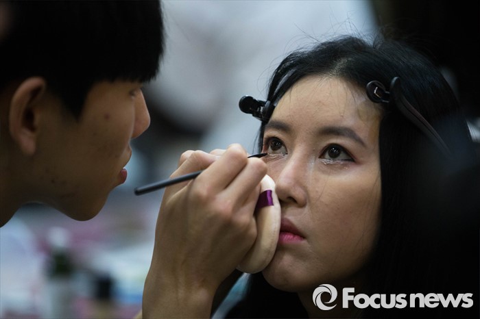 (서울=포커스뉴스) 28일 오전 서울 삼성동 코엑스에서 열린 2016 국제건강산업박람회에서 한 시민이 메이크업을 체험하고 있다.