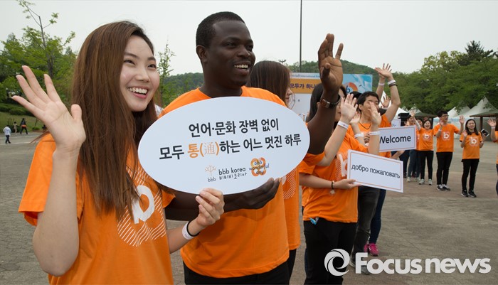 (과천=포커스뉴스) 30일 경기도 과천시 서울대공원에서 bbb코리아 자원봉사자들이 '제9회 인터내셔널 프렌즈 데이'를 홍보하고 있다.