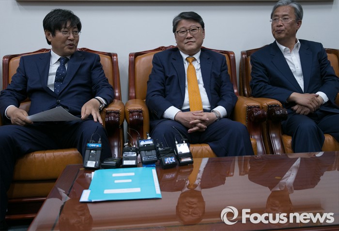 (서울=포커스뉴스) 조원진(가운데) 새누리당 원내수석부대표, 이춘석(왼쪽) 더불어민주당 원내수석부대표, 유성엽 국민의당 원내수석부대표가 27일 오후 서울 여의도 국회에서 19대 마지막 임시국회 의사일정 및 쟁점법안 등 논의를 위한 회동을 하고 있다.
