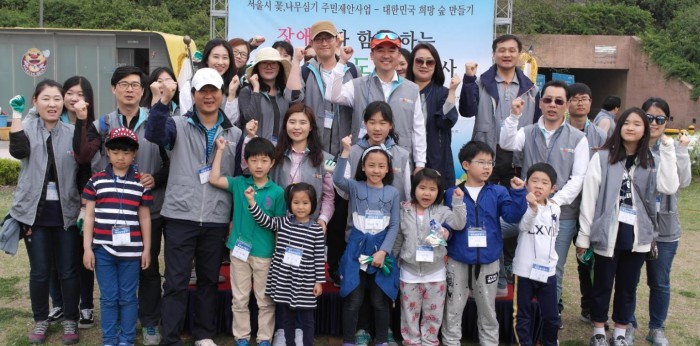 한편, 이번 '탄소상쇄 도시숲' 행사는 CJ대한통운과 한국그린자원이 주관하고, 서울시와 한강사업본부, 한국장애인녹색재단이 주최, 산림청 녹색사업단, 국립산림과학원, 서울그린트러스트가 후원했다.장애인과 함께하는 '탄소상쇄 도시숲' 조성 행사에 참여한 CJ대한통운 직원들과 가족들이 기념촬영을 하고 있다.<사진제공=CJ대한통운>