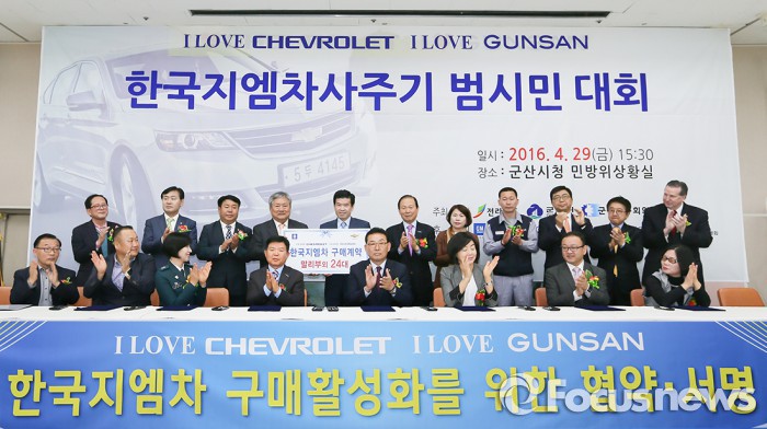 지난 달 29일 한국GM은 군산시청에서 군산을 중심으로 전북 지역 내 제품 판매 증진을 위한 MOU 협약식을 개최했다. 군산상공회의소 주관으로 열린 행사에는 제임스 김 한국GM 사장과 임직원, 군산여성자원봉사회 등 전북지역 14개 시·군·지역 유관 단체 관계자들이 대거 참석했다. 한국GM은 향후 군산 지역 내 점유율 50%를 달성하기 위해 다각도의 노력을 기울이겠다고 밝혔다.