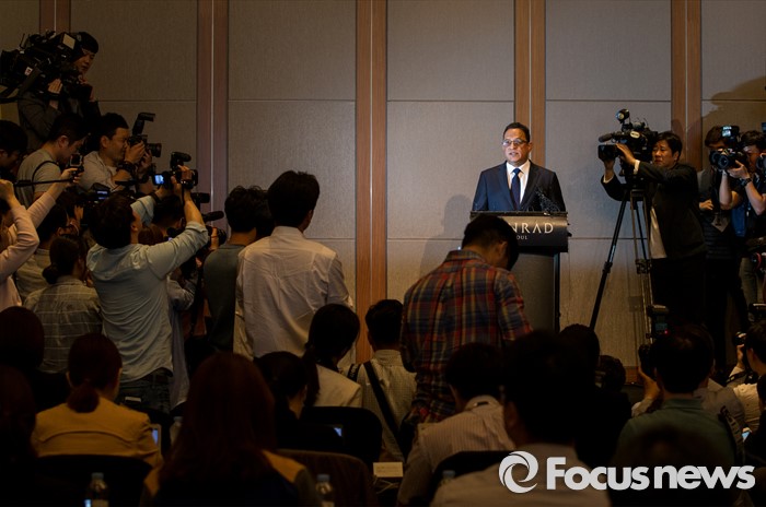 (서울=포커스뉴스) 2일 오전 서울 영등포구 콘래드호텔에서 열린 '옥시레킷벤키저(현 RB코리아) 가습기 살균제 파동' 관련 기자회견에서 아타 울라시드 사프달 옥시코리아 대표가 회견문을 발표하고 있다.