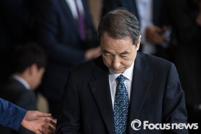 (서울=포커스뉴스) 가습기 살균제 과실 책임을 받고 있는 신현우 전 옥시 대표가 피의자 신분으로 26일 오전 서울 서초구 서울중앙지방검찰청에 출두하고 있다.