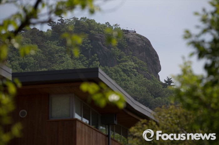 (김해=포커스뉴스) 고 노무현 전 대통령 서거 7주기를 앞두고 1일 오전 노 전 대통령의 사저가 공개되고 있다. 사저 너머로 봉화산이 보이고 있다.
