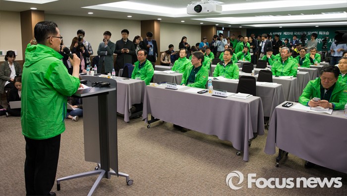(양평=포커스뉴스) 국민의당 20대 총선 당선인 워크숍에서 합의 추대된 박지원 신임 원내대표가 27일 오전 경기도 양평 한화리조트에서 인사말을 하고 있다.
