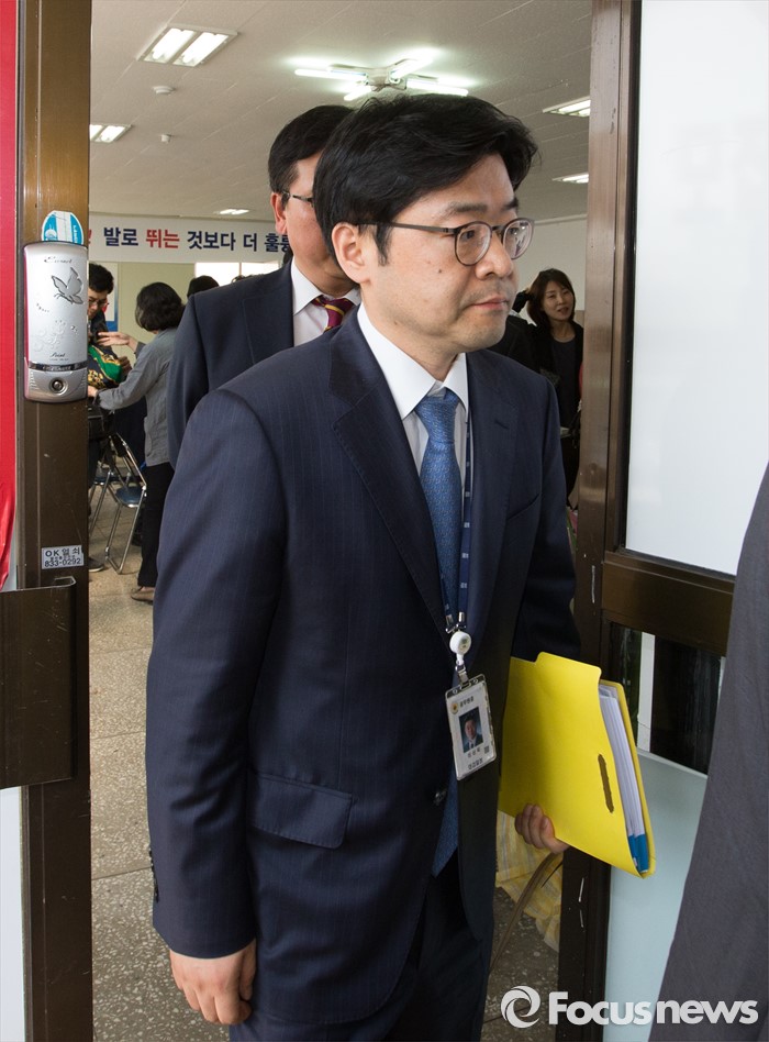 (부여=포커스뉴스) 29일 오후 이완구 전 국무총리가 2013년 재보궐 선거 때 사용한 충남 부여 선거사무소에서 사법부 관계자들이 현장검증을 마치고 선거사무소를 나서고 있다.