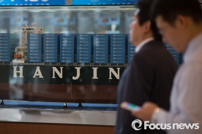 (서울=포커스뉴스) 제1호 해운사인 한진해운이 심각한 경영난으로 재무구조 개선 및 경영정상화를 위해 채권단에 자율협약을 신청한 27일 오전 서울 영등포구 한진해운 본사 로비에 직원들이 지나가고 있다.