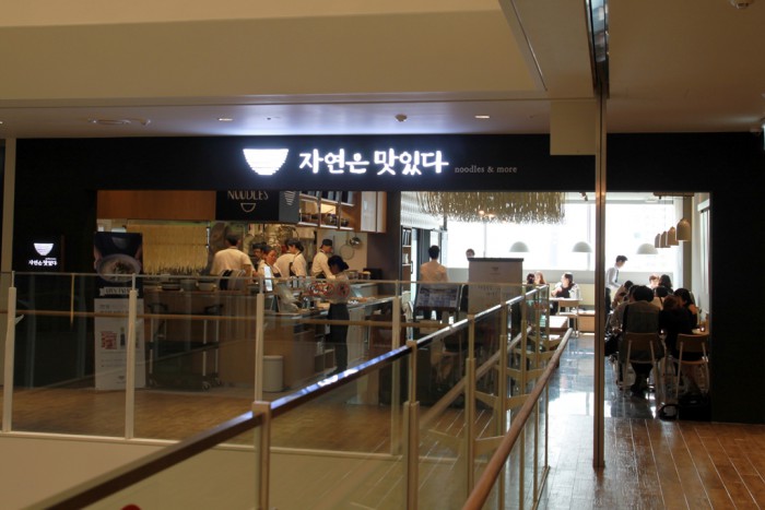 '자연은 맛있다'는 풀무원 생면과 제철 식재를 기반으로 한국식 레시피를 선보이는 면요리 전문점이다. 통상적으로 유통기간을 늘리는 데 쓰이는 '프로필렌글리콜(propylene glycol)' 성분이 일절 첨가되지 않은 무첨가 원칙의 풀무원 100% 생(生)면만 사용한다.