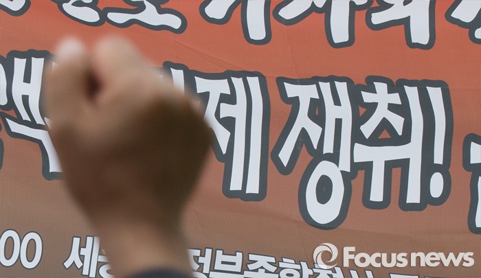 (세종=포커스뉴스) 민주노총 공공운수노조 택시지부 조합원들이 2일 세종 정부세종청사 국토교통부 앞에서 결의대회를 갖고 법인택시 전액관리제 쟁취 및 운송경비 전가행위 금지를 촉구하고 있다.