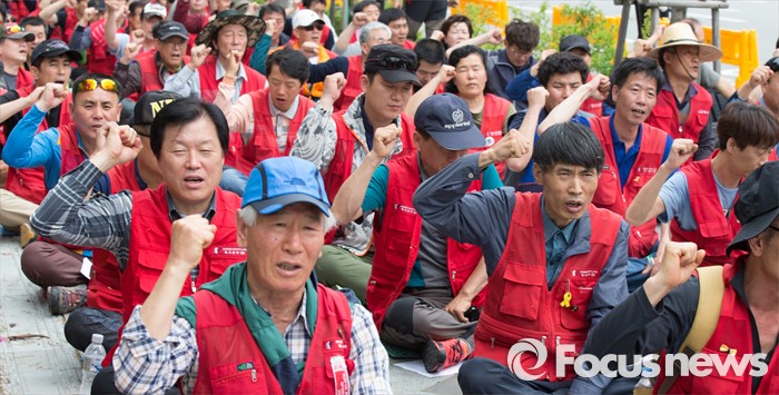 (세종=포커스뉴스) 민주노총 공공운수노조 택시지부 조합원들이 2일 세종 정부세종청사 국토교통부 앞에서 결의대회를 갖고 법인택시 전액관리제 쟁취 및 운송경비 전가행위 금지를 촉구하고 있다.