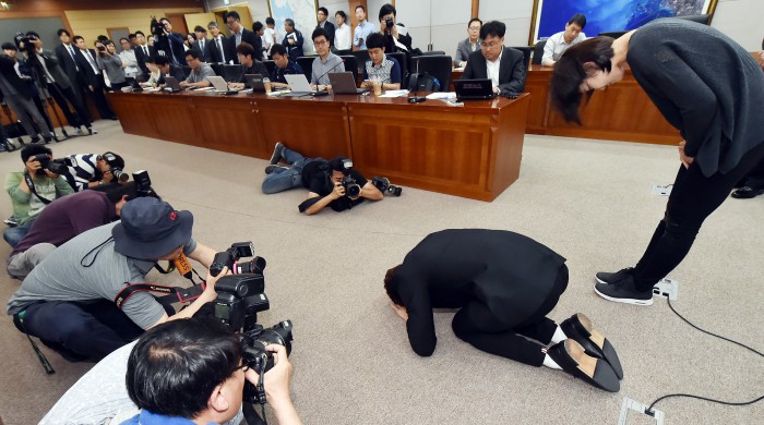 박태환은 지난 2013년 3월28일 인천시청에 입단해 2014년 인천아시안게임 등 여러 대회에 참가한 바 있다.박태환은 2일 오후 인천시청 브리핑룸에서 유정복 시장과 함께 기자회견을 열고 “수영선수는 수영장에서 성적·결과를 가지고 이야기해야 한다”며 무릎을 꿇고 큰절을 하고 있다. <사진제공=인천시>