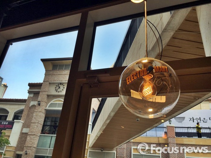 이마트는 올해 일렉트로마트에서만 2000억원 이상 매출을 달성할 계획이다. 개점 예정지인 김해와 왕십리 외에도 대구 등 대도시를 중심으로 출점을 검토 하고 있다. 해마다 10~20개씩 신규 매장을 낸다는 목표다.일렉트로마트 4호점 판교점 지상 1층 스마트기기 체험바 천장에 달린 일렉트로마트 전구와 창 밖 전경. 2016.05.02 이서우 기자 buzacat@focus.co.kr일렉트로마트 4호점인 판교점 지상 1층에 전시된 자르테크놀로지의 에어로불(AeroBull) HD 블루투스 스피커(왼쪽)와 엑소 피규어 스피커.2016.05.02 이서우 기자 buzacat@focus.co.kr