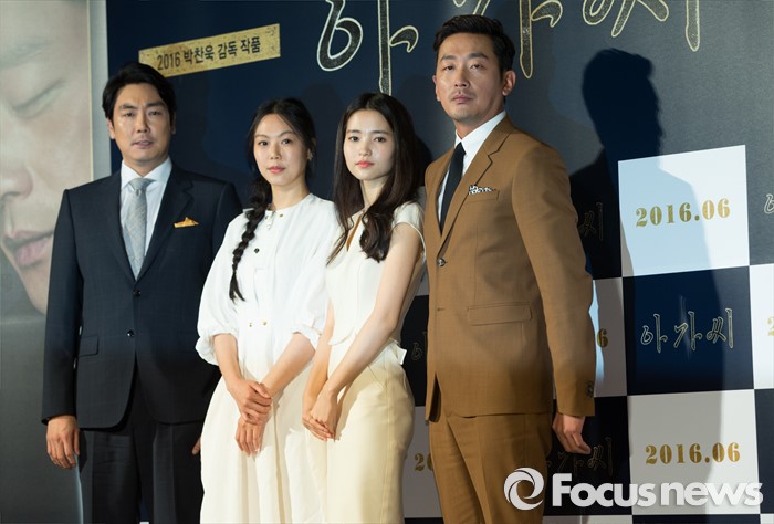 '아가씨'는 오는 6월 국내에서 개봉해 관객과 만날 예정이다. '아가씨'는 귀족 아가씨 히데코(김민희 분)를 둘러싼 후견인 코우즈키(조진웅 분)와 하녀 숙희(김태리 분), 그리고 재산을 노리고 접근한 사기꾼 백작(하정우 분)의 이야기를 담은 작품이다. 네 사람의 관계 속에서 신예 김태리의 모습이 어떻게 펼쳐질지 기대를 높인다.'아가씨'에서 하녀 숙희 역을 맡은 김태리가 지난 2일 제작보고회에 참석해 작품과 관련된 질문에 응했다. 사진은 제작보고회 당시 모습과 '아가씨' 스틸컷(좌측하단). <사진제공=포커스뉴스DB,CJ엔터테인먼트>(서울=포커스뉴스) 2일 오전 서울 중구 웨스틴조선호텔에서 열린 영화 '아가씨' 제작보고회에 참석한 배우 조진웅(왼쪽부터), 김민희, 김태리, 하정우가 포토타임을 갖고 있다. 2016.05.02 김유근 기자 김태리와 김민희는 '아가씨'에서 각각 하녀와 아가씨 역을 맡아 열연했다. 사진은 하녀와 아가씨 관계 포스터. <사진제공=CJ엔터테인먼트>