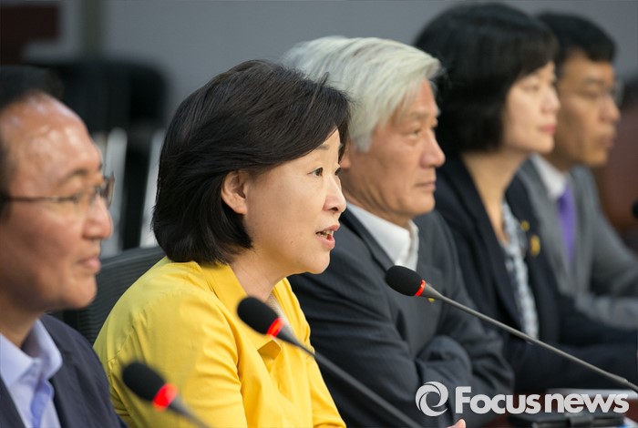 (서울=포커스뉴스) 심상정(왼쪽 두번째) 정의당 상임대표가 3일 오후 서울 여의도 국회 의원회관에서 열린 20대 총선 당선자 워크숍에 참석해 모두발언을 하고 있다.