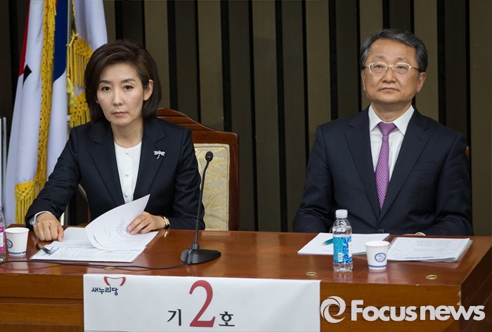 (서울=포커스뉴스) 나경원(왼쪽) 새누리당 원내대표 후보자, 김재경 정책위의장 후보자가 3일 오후 서울 여의도 국회에서 열린 새누리당 원내대표, 정책위의장 선출 및 당선자 총회에 참석하고 있다.