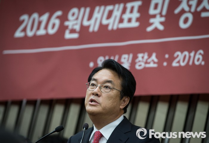 (서울=포커스뉴스) 3일 오후 서울 여의도 국회에서 열린 새누리당 20대 국회 첫 원내대표 및 정책위의장 선출을 위한 당선자 총회에서 선출된 정진석 신임 원내대표가 당선 소감을 전하고 있다.