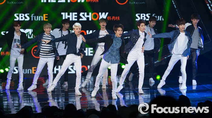 (서울=포커스뉴스) 3일 오후 서울 마포구 SBS 프리즘 타워에서 열린 SBS MTV 생방송 더쇼에 참여한 업텐션이 무대를 선보이고 있다.