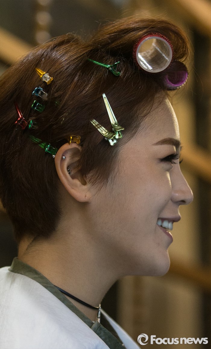 (서울=포커스뉴스) 3일 오후 서울 강남구 컬처앤네이처 청담점에서 걸그룹 솔티의 멤버 겨울이 머리손질을 하고 있다. 솔티는 3일 오후 SBS MTV 생방송 더쇼를 통해 데뷔한 걸그룹 이다.