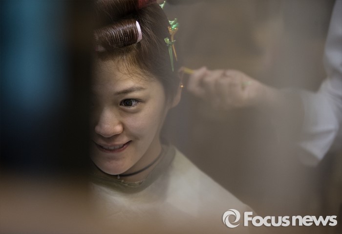 (서울=포커스뉴스) 3일 오후 서울 강남구 컬처앤네이처 청담점에서 걸그룹 솔티의 멤버 겨울이 머리손질을 하고 있다. 솔티는 3일 오후 SBS MTV 생방송 더쇼를 통해 데뷔한 걸그룹 이다.