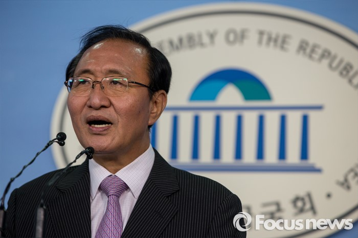 (서울=포커스뉴스) 노회찬 정의당 신임 원내대표가 4일 오전 서울 여의도 국회에서 원내대표 당선 기자회견을 하고 있다.
