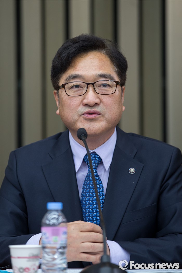 (서울=포커스뉴스) 더불어민주당 원내대표 경선이 출마한 우원식 후보가 4일 오전 서울 여의도 국회에서 열린 '원내대표 선거 합동 토론회'에서 발언 하고 있다.