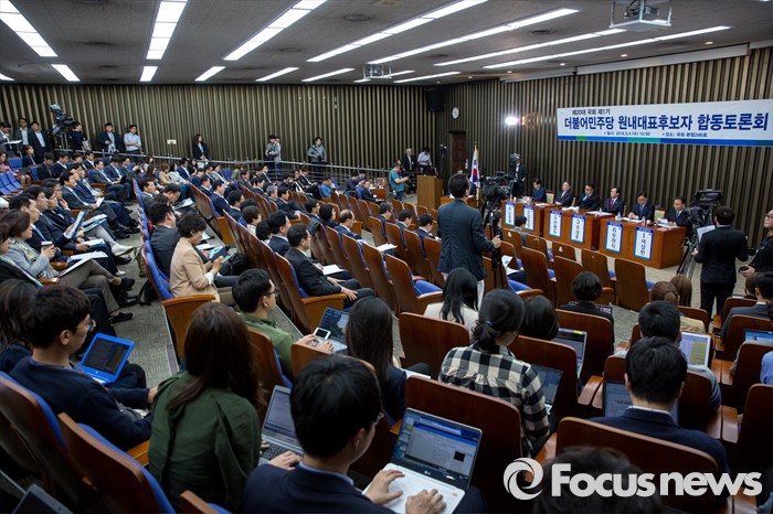 (서울=포커스뉴스) 4일 오전 서울 여의도 국회에서 열린 '원내대표 선거 합동 토론회'에서 후보들이 토론 하고 있다.