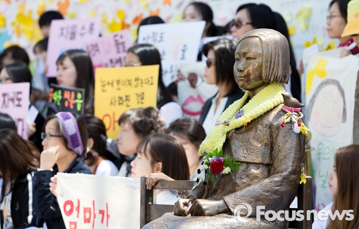 (서울=포커스뉴스) 4일 오후 서울 종로구 옛 일본대사관 앞에서 제1229차 일본군 위안부 문제해결을 위한 정기 수요집회가 열리고 있다.