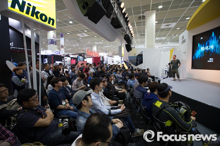 (서울=포커스뉴스) 4일 오후 서울 강남구 코엑스 A,B홀에서 열린 2016 서울국제사진영상기자재전(P&I)에 한 업체가 관람객들에게 사진 강의를 하고 있다.
