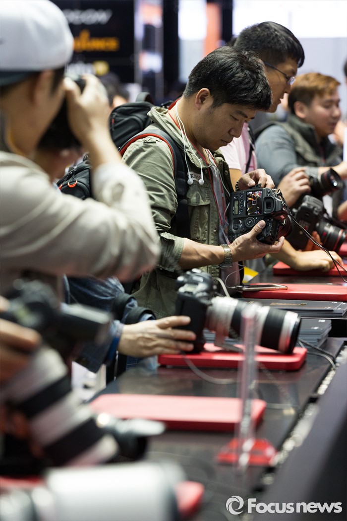 (서울=포커스뉴스) 4일 오후 서울 강남구 코엑스 A,B홀에서 열린 2016 서울국제사진영상기자재전(P&I)에서 관람객들이 제품을 구경하고 있다.