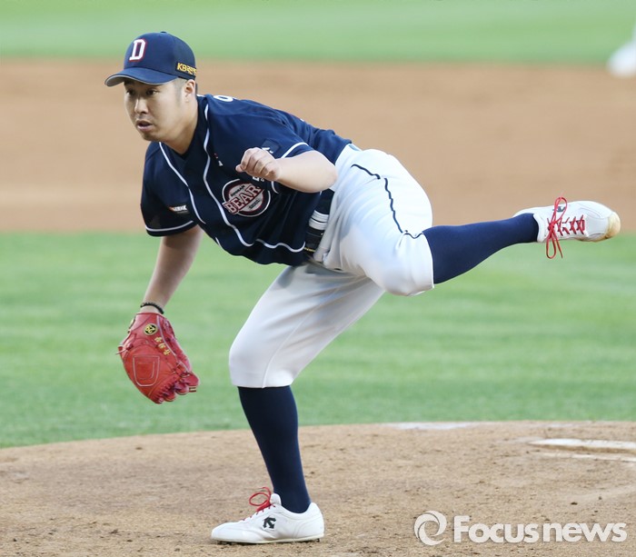 (서울=포커스뉴스) 4일 서울 잠실구장에서 열린 2016 프로야구 두산-LG 경기에서 1회말 두산 선발투수 유희관이 투구하고 있다.