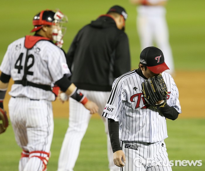 (서울=포커스뉴스) 4일 서울 잠실구장에서 열린 2016 프로야구 두산-LG 경기 5회초 무사 2루에서 LG 선발 투수 우규민이 교체돼 마운드를 내려가고 있다.