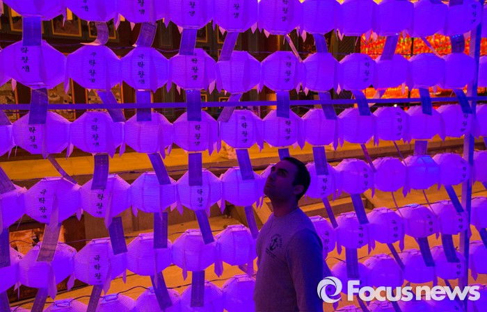 (서울=포커스뉴스) 4일 오후 서울 종로구 조계사에서 연등 점등식이 열리고 있다.