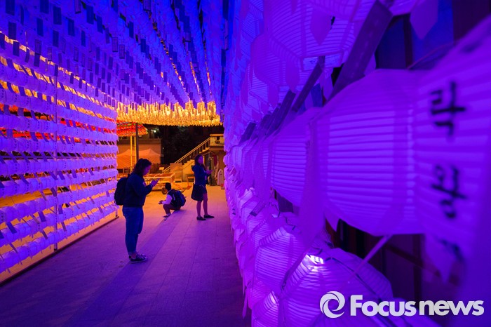 (서울=포커스뉴스) 4일 오후 서울 종로구 조계사에서 연등 점등식이 열리고 있다.