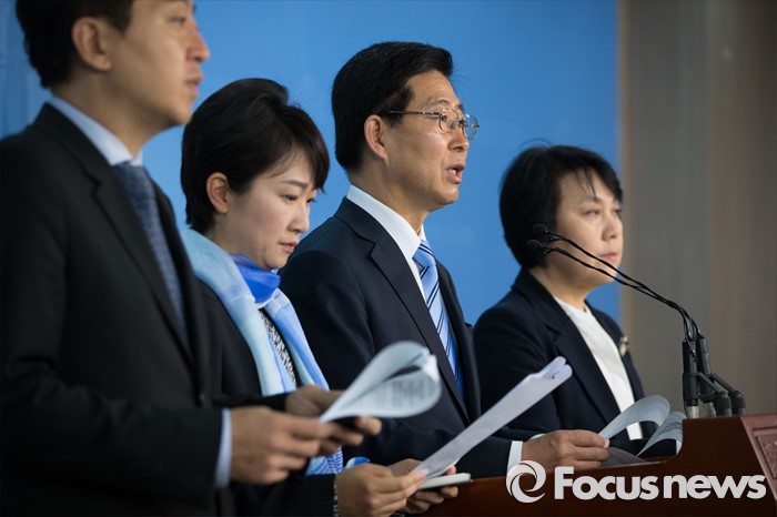 (서울=포커스뉴스) 양승조(오른쪽 두번째) 더불어민주당 가습기 살균제 특위 위원장이 5일 서울 여의도 국회 정론관에서 진상 파악을 위한 성명서를 발표하고 있다.