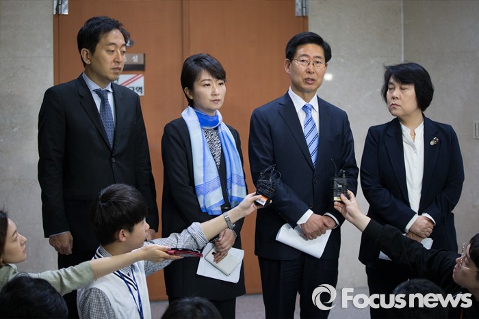 (서울=포커스뉴스) 양승조(오른쪽 두번째) 더불어민주당 가습기 살균제 특위 위원장이 5일 서울 여의도 국회 정론관에서 진상 파악을 위한 성명서를 발표하고 있다.