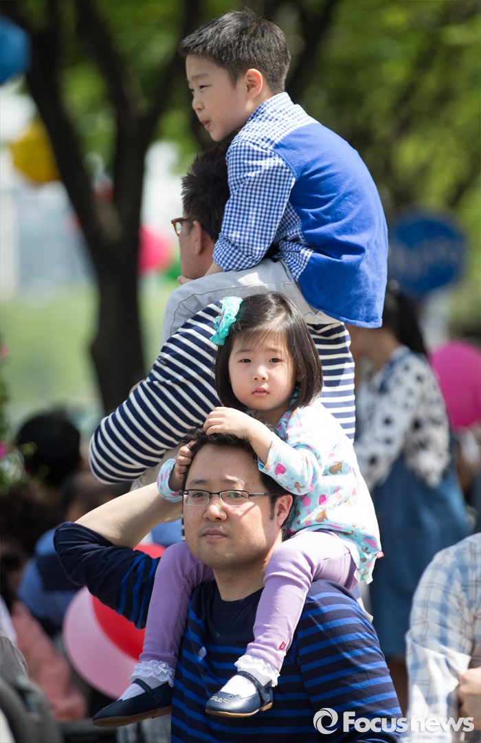 (서울=포커스뉴스) 어린이날을 맞아 5일 오후 서울 영동대로 일대에서 열린 '2016 C-페스티벌'에서 가족들과 함께 온 시민들이 C-퍼레이드 행사를 관람하고 있다.