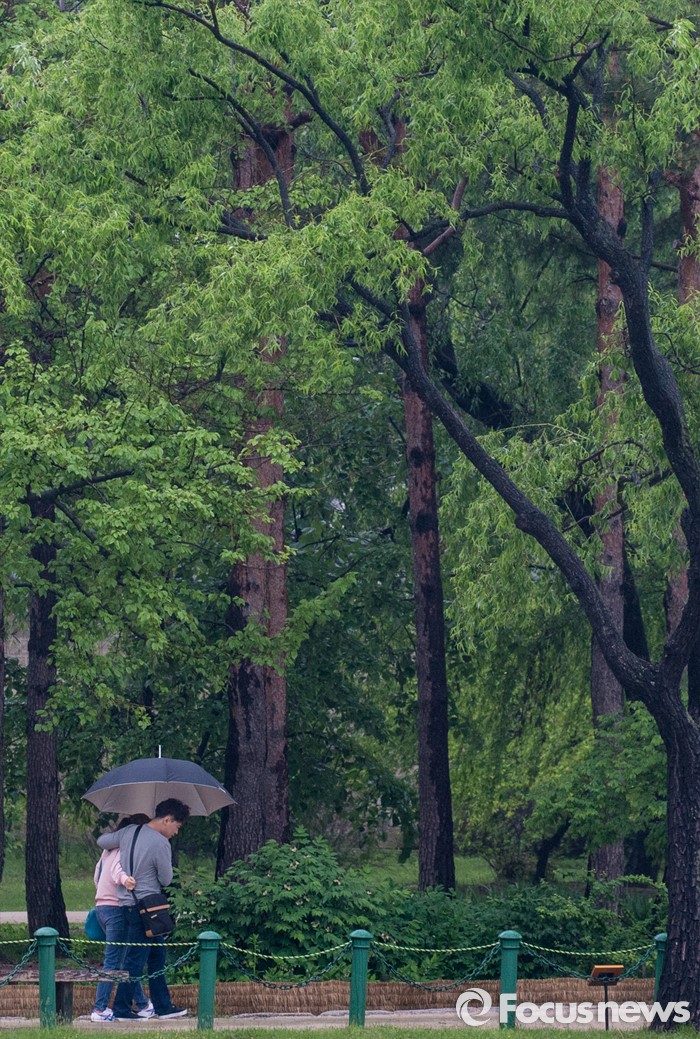 (서울=포커스뉴스) 임시공휴인인 6일 오후 서울 경복궁을 찾은 시민 및 관광객들이 궂은 날씨 속에 궐내 경치를 즐기고 있다.