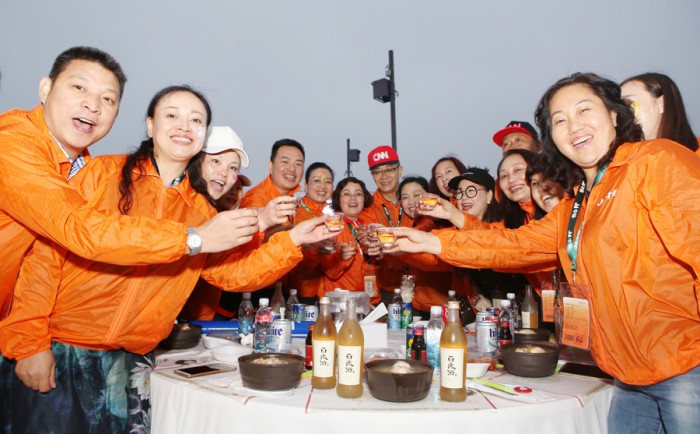 (서울=포커스뉴스) 중국 중마이그룹 관광객 4000명은 지난 6일 서울 반포 한강공원 달빛광장에서 진행된 '삼계탕 파티'에서 삼계탕과 함께 국순당 백세주를 즐겼다.