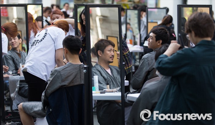 (서울=포커스뉴스) 7일 오후 서울 서대문구 신촌 차없는 거리에서 열린 제1회 신촌 뷰티 페스티벌 '뷰티체어 101' 행사 참가자들이 메이크업과 머리 손질을 받고 있다.
