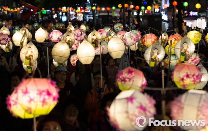 (서울=포커스뉴스) 부처님 오신날을 일주일 앞둔 7일 오후 서울 종로구 흥인지문부터 시작해 조계사까지 이어지는 화려한 연등 행렬이 펼쳐지고 있다.