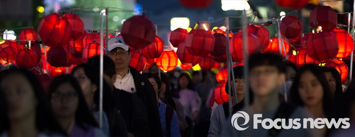 (서울=포커스뉴스) 부처님 오신날을 일주일 앞둔 7일 오후 서울 종로구 흥인지문부터 시작해 조계사까지 이어지는 화려한 연등 행렬이 펼쳐지고 있다.