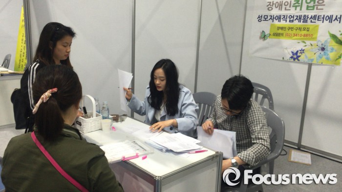선정된 법인은 시설 자체사업계획 지원 외에도 오는 11월 서울시 장애인생산품판매시설 경영지원센터와 함께 '장애인직업재활 사회공헌 콘서트'를 열고 시범사업의 성과를 공유해야 한다.(서울=포커스뉴스) 지난 27일 '서울시 장애인 취업박람회'에 일자리를 구하기 위해 온 이제인(27·여)씨가 취업 설명을 듣고 있다. 2016.04.27 김대석 기자