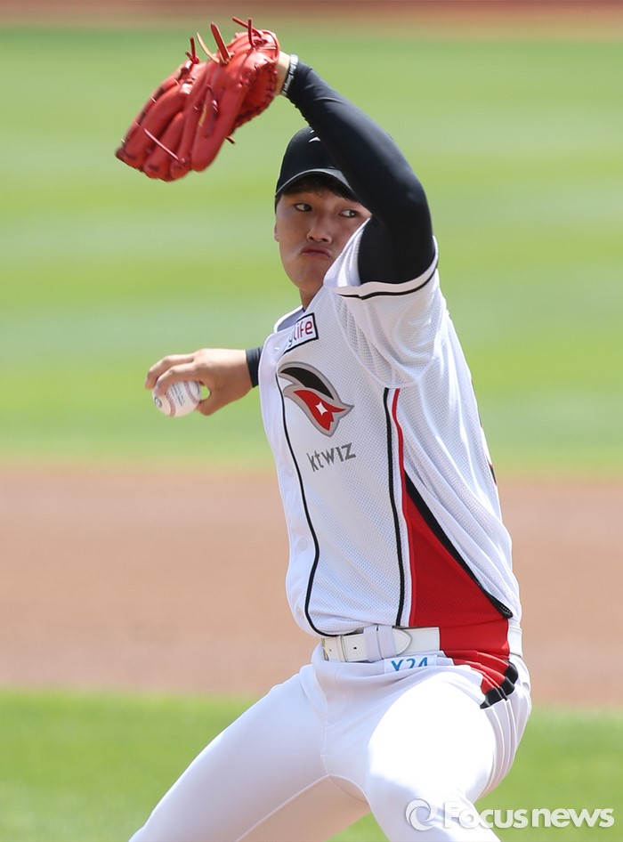 (서울=포커스뉴스) 8일 수원 kt위즈파크에서 열린 2016프로야구 한화-kt 경기에서 1회초 kt 선발투수 주권이 투구하고 있다.