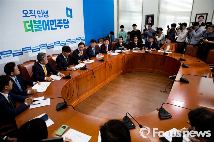 (서울=포커스뉴스) 우상호 더불어민주당 원내대표가 9일 오전 서울 여의도 국회에서 열린 신임 원내대표단 회의에서 모두발언 하고 있다.