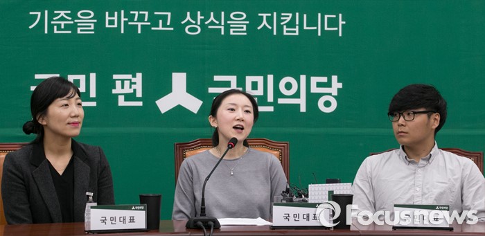 (서울=포커스뉴스) 9일 오전 서울 여의도 국회에서 열린 국민의당 최고위원회의에 참석한 국민대표들이 발언하고 있다. 왼쪽부터 계윤정 소방교, 이윤정 소방경, 이규동 파이어마커스 대표.