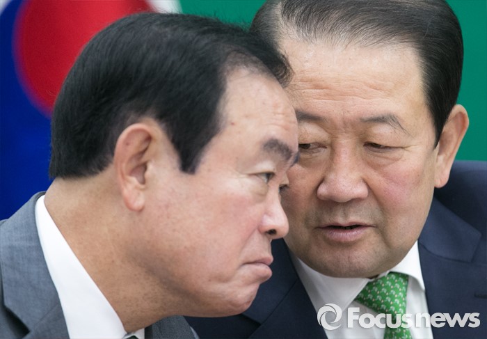 (서울=포커스뉴스) 박주선(오른쪽), 장병완 국민의당 의원이 9일 오전 서울 여의도 국회에서 열린 최고위원회의에 참석해 대화하고 있다.