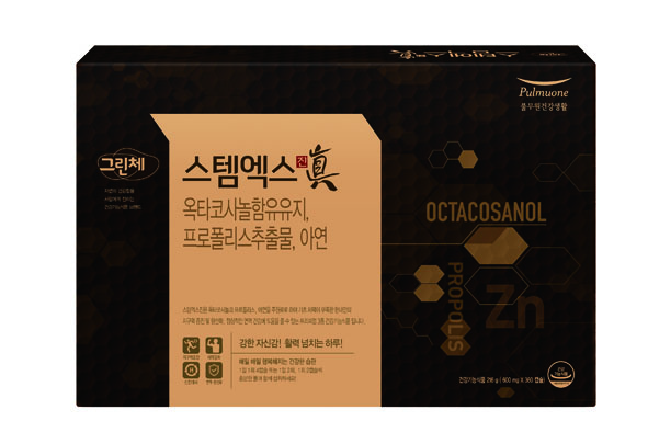 '스템엑스 진'은 옥타코사놀과 프로폴리스, 아연을 주원료로 운동량 부족으로 기초 체력이 떨어지는 5060세대의 지구력 증진 및 항산화, 정상적인 면역 건강에 도움을 주는 프리미엄 3종 복합 건강기능식품이다.