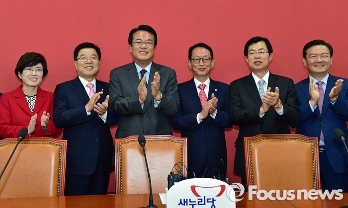 | △ 박수치는 與 신임 원내대표단 |