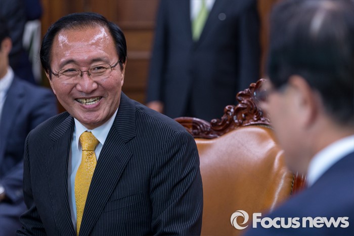 (서울=포커스뉴스) 노회찬(왼쪽) 정의당 원내대표가 9일 오후 서울 여의도 국회에서 정의화 국회의장을 예방 하고 있다.