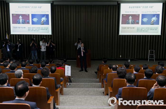 | △ 與 당선자 총회 특강에 등장한 유승민 의원 사례 |